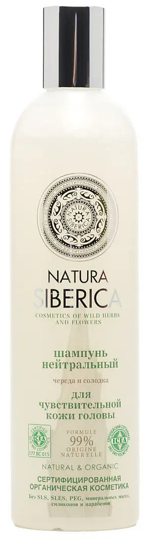 В состав шампуня Natura Siberica входят череда и солодка. Череда – одна из самых безопасных натуральных трав, которая нежно ухаживает за волосами. Солодка – естественная пенящаяся основа. Благодаря ей шампунь не раздражает чувствительную, склонную к аллергии кожу головы. Шампунь подходит для ежедневного ухода за волосами. Мягкая моющая формула на основе растительных аминокислот бережно очищает волосы, не нарушая естественный защитный барьер, предотвращая появление сухости кожи.